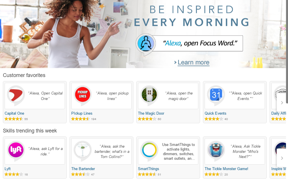 Assistantは対応できるタスクをカードとして示する。それらは「Subscription (ニュース購読)」、「Action (タイマーセットなど)」、「Fun (ゲームなど)」、「Translation (翻訳)」、「Weather (天気予報)」、「Travel (旅行案内)」、「Sports (スポーツニュース)」、「Answer (Q&A)」、「My Assistant (Assistantの自己紹介)」となる。