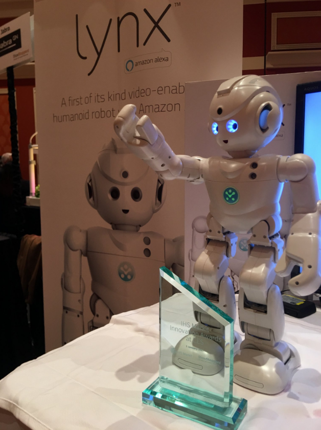 UBTechはShenzhen (中国・深セン) に拠点を置くロボット開発会社で「Lynx」 (下の写真) を発表した。LynxはAlexa Voice Serviceを組み込み、言葉でロボットを操作することができる。音楽再生やメールの読み上げなどを言葉で指示できる。Alexaが提供する機能の他に、Lynxは搭載しているカメラで利用者を識別し、個人に沿った対応ができる。また、カメラをセキュリティモニターとして使えば、Lynxが留守宅を監視する。価格は800ドルから1000ドルで2017年後半に発売される。ロボット開発では会話機能がネックとなるが、Alexa Voice Serviceを使うことで、開発工程が短くなる。手軽にロボットを開発でき、市場への参入障壁が大きく下がる。LynxはAlexaがロボットの標準インターフェイスとして普及する可能性を示唆している。