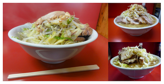 ラーメン二郎は東京都港区の三田店が本店で、ここで修業した弟子たちが都内を中心に出店し営業している。このため、調理方法や盛り付けがよく似ており、ラーメンの写真からそれがどこの店で出されたものかを判定するのは難しい (上の写真、3店舗で出されるラーメン、盛り付けやどんぶりの形状が似ており、また、テーブルの色は赤で統一されている)。