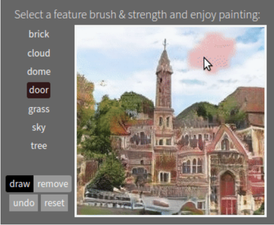 特定されたユニットはオブジェクトを生成するだけでなく、オブジェクトに関する常識も学んでいる。例えば、ドアを追加する際には、建物のスタイルにマッチしたドアを生成する。更に、ドアを建物以外のオブジェクト(例えば空)に追加しようとしても、アルゴリズムはこれを拒否する(下の写真)。アルゴリズムは教育の過程で人間のように常識を得ることが示された。