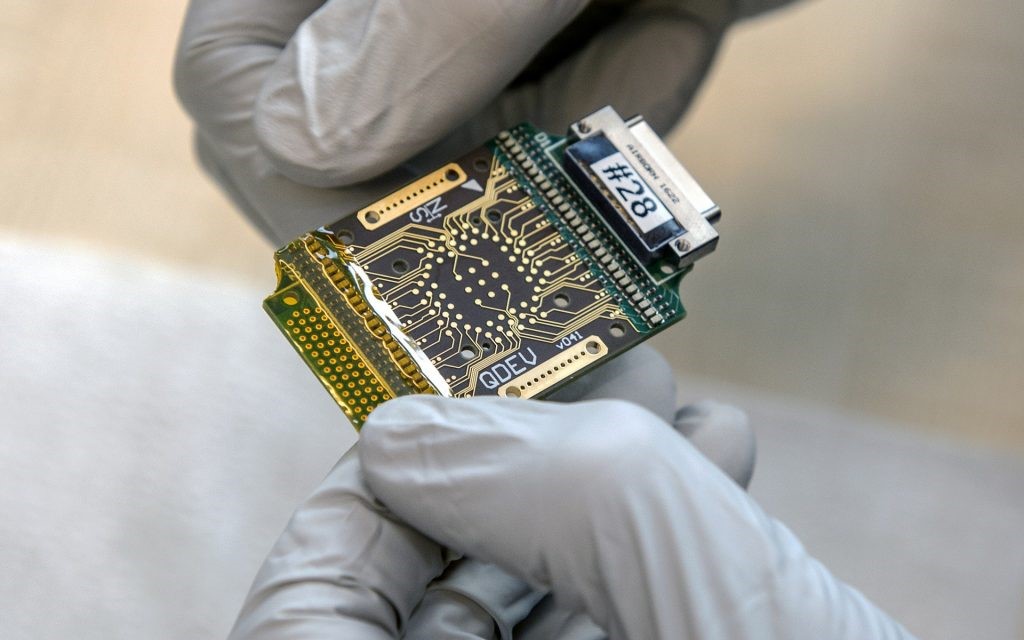 Microsoftは「Topological Quantum Computer」という方式の量子コンピュータを開発している(下の写真)。二次元平面で動く特殊な粒子の特性を利用し、その位相変化を情報単位とする方式で、極めて信頼性が高いが、開発には時間を要す。IonQとHoneywellは「Trapped Ions」という手法の量子コンピュータを開発している。電荷を帯びた原子(イオン)の電子のエネルギー状態でQubitを構成する。Quantum Circuitsは超電導回路を使ってQubitを生成するが、量子コンピュータを多数のモジュールで構成する。GoogleやIBMは複数の超電導回路を一つのチップに搭載するが、Quantum Circuitsはこれを多数のモジュールに分けて搭載する。量子プロセッサを多重化することで信頼性を高めるアプローチを取る。
