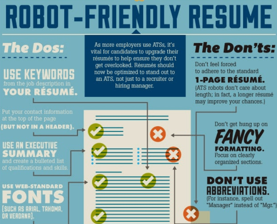 企業でロボット面接官の導入が進み、面接を受ける側はその対策を進めている。大学は学生にAI面接の受け方を指導してる。Brigham Young UniversityはHireVueで出題される質問を把握しており、学生はこれらの質問に回答する面接リハーサルを行い、指導教官からアドバイスを受ける。University of Marylandはロボット面接官に好印象を与えるコツを教育している。それによると、言葉の使い方の他に、身振り、笑顔、うなずきが重要と指導している。(下の写真、AIに好印象を与える履歴書の書き方)