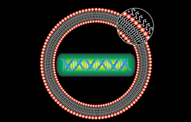 CRISPR医療ではcrRNAとCasのパッケージをどのような手段で細胞にデリバリーするかが課題となる。Molecular Foundryは「Lipitoid」の研究を進めており、ここにPAC-MANを搭載し肺細胞に送り届ける。Lipitoidとは人工的に生成された分子で、DNAとRNAで自律的に生成する。このLipitoidの直径は1ナノメートル(10^-9 メートル)でウイルスほどの大きさのナノ粒子(上のグラフィックス、円形の部分)で、ここにPAC-MANを組み込み(緑色の部分)、それを肺細胞へデリバリーする。