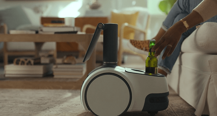 今週、Amazonは発表イベントで家庭向けのロボット「Astro」を公開した(下の写真)。ロボットは子犬ほどの大きさで、頭部にディスプレイが搭載され表情を表し情報を表示する。ロボットはカメラの映像をAIで解析し、家の中で障害物を避けて自動で走行する。ベーシックな機能だけを搭載したロボットで、Amazonはこれを「Day 1 Editions」と呼ぶ。完結した製品になるまでには5年程度の時間が必要で、Amazonはロボットの普及に向け第一歩を踏み出した。