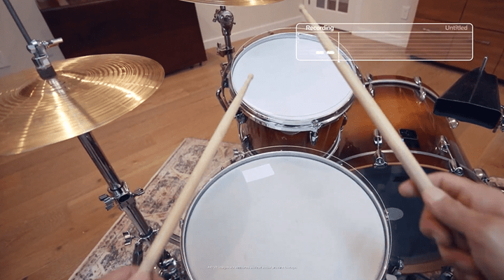- 手作業(Hand and object manipulation): AIは手の動きからどんな作業をしているかを把握。(ドラムを演奏する方法を把握し、それを教える(下の写真)。)
