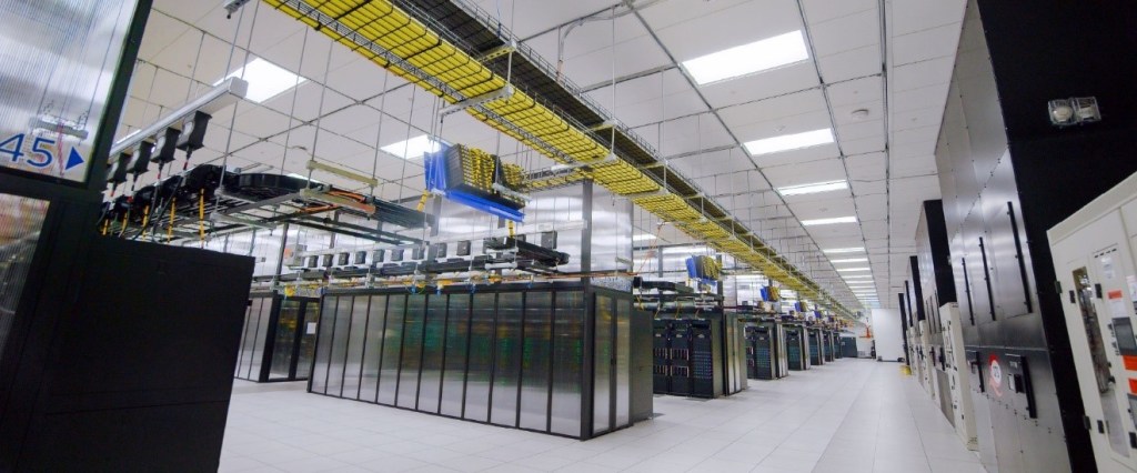 Metaは、スパコンを「AI Research SuperCluster(RSC)」(上の写真)と呼び、AI研究のための高速計算機と位置付ける。今年中旬の完成を予定しており、演算性能はExaflopsを超える。(Exaflopsとは1秒間に10の18乗(10^18)の演算を実行する性能。) 現在、最速のマシンは442 Petaflops (0.442 Exaflops)で、ついにスパコンがExaの領域に入ることになる。