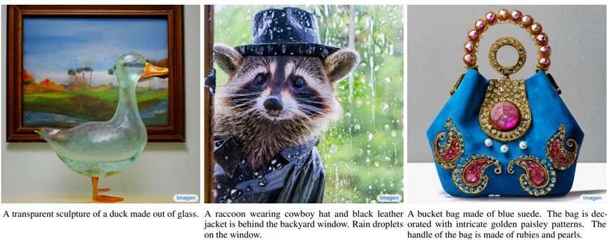 現在、イメージを生成するには、Adobe Photoshopなどのツールを使い、写真を編集するなどの手法が取られる。これに対し、Imagenは人間の言葉を理解し、それを忠実に実行し、リアルなイメージを生成する。誰でも簡単に、感覚的にグラフィックスを生成でき、アートやデザインの位置づけが大きく変わると予想される。また、メタバースでは、Imagenは現実空間と仮想空間が融合した社会を生成するための重要な技術となる。(下の写真、Imagenは言葉の指示に従ってリアリスティックなオブジェクトを描き出す。)