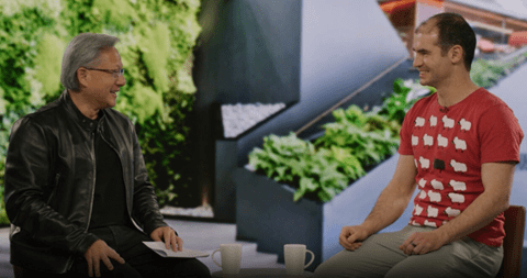 Nvidiaは開発者会議「GTC 2023」を開催し、CEOのJensen Huang(下の写真左側)はOpenAIの共同創設者であるIlya Sutskever(右側)と対談し、大規模言語モデルとAIスパコンに関し意見を交わした。Sutskeverは対談の中で、GPT-4とChatGPTの開発手法について、その内幕を開示し、また、これからの開発方向について触れた。OpenAIの高度なAIはMicrosoft Azureで開発されており、ここにNvidiaのGPU最新モデルが使われている。