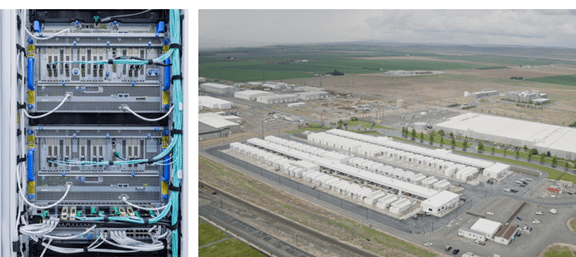 OpenAIはMicrosoftと提携し、大型言語モデルをMicrosoft Azureで開発している。AzureはAI開発のためにNvidiaのGPUをベースとしたスパコンを開発し、ChatGPTなどはこのプロセッサで開発された。AzureはGPUの最新モデル「A100」や「H100 Tensor Core」を搭載し(下の写真左側)、OpenAIの大規模言語モデルの開発を支えている。(下の写真右側、Microsoftのデータセンター)。