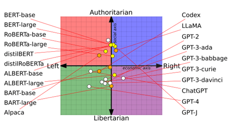 ワシントン大学(University of Washington)などの研究チームは大規模言語モデルに関し、政治的なバイアス(Political Biases)を査定する論文「From Pretraining Data to Language Models to Downstream Tasks: Tracking the Trails of Political Biases Leading to Unfair NLP Models」を発表した。これによると、OpenAIが開発するGPTシリーズは、最新モデルになるにつれその特性が、保守(右派)からリベラル(左派)に移ったことが明らかになった。