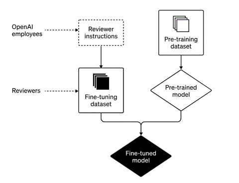 これに対し、OpenAIのCEOであるSam Altmanは、ChatGPTを教育する手法を公開し、アルゴリズムを中立にする努力を続けていることをアピールした。しかし、教育手法は「アナログ」で、アルゴリズムのロジックをソフトウェアで規定するのではなく、大量のデータを読み込み、アルゴリズムがここから知識を吸収する方式となる。AltmanはChatGPTの教育は、「犬の訓練に似ている」と表現している。繰り返しトレーニングを重ね、AIが人間が望む特性を習得する。