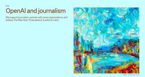 OpenAIは、著作物で言語モデルを教育するのは「フェアユース(Fair Use)」で、著作権侵害には当たらないと主張する。この解釈は業界で定着しており、著作者と開発者の双方にメリットがある。また、AIモデルを著作物で教育する手法は、アカデミアや業界団体や著作者団体などから支持されている。更に、OpenAIはメディア企業にアクセスを禁止するオプションを提示しており、実際に、ニューヨーク・タイムズはOpenAIのクローラーが記事を収集するのを禁止ている。