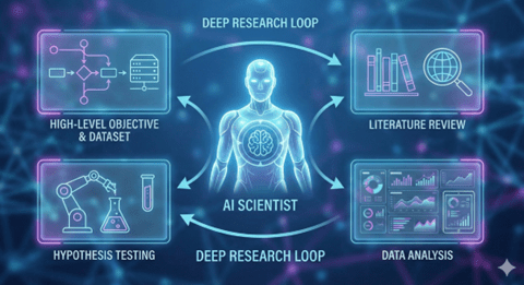 最先端のAIサイエンティストは人間の研究者が半年かかる作業を半日程度で実行する。研究を実行するためには膨大な数の論文を読む必要があるが、AIサイエンティストは1,000を超える論文を読みこれを理解し研究の最先端情報を把握する。これらをベースに仮説を立案し、これを検証するプロセスを実行する。実際には、仮説を検証するためのプログラムを生成し、これを実行することで推論が正しいことを裏付ける。AIサイエンティストは膨大な情報を解析するだけでなく、これを前提し新たな仮説を生み出し、これが正しいことを証明する機能を持つ。