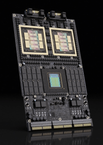 NvidiaはArmと提携し知的財産のライセンスを受け次世代GPUシステム「Vera Ruben」を開発した。このシステムは「Vera CPU」と「Ruben GPU」で構成されるスーパーチップとして製品化された(下の写真)。NvidiaはVera CPUの開発でArmから「Olympus」のライセンスを受け、これをベースに88コアの独自のCPUを開発した(下の写真、水色のチップ)。RubenがGPUとして数値演算を超高速で実行し(金色の二つのチップ)、VeraがCPUとしてシステムの制御などを実行する。Linuxなどの基本ソフトがVeraで稼働しシステム全体を制御する。