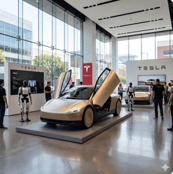テスラのコア事業はロボティックスでヒューマノイド・ロボットとサイバーキャブが両輪となる。(先頭の写真、テスラのショールームで「オプティマス」と「サイバーキャブ」の販売が始まる) マスクはテスラの企業価値の80%をヒューマノイド・ロボットが生み出すと述べており、自動車産業の次の巨大産業となる。テスラは配下でAI企業xAIを運営しており、最新のAIモデルがヒューマノイド・ロボットとロボタクシーに搭載される。テスラは他のAI企業とは異なり、物理社会でインテリジェンスを生み出すフィジカルAIがコア事業となる。