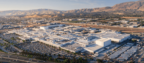 テスラ「モデルS」と「モデルX」はカリフォルニア州フリーモントの工場で製造されている(下の写真)。この製造施設をヒューマノイド・ロボット「オプティマス」に振り向け、ここで量産体制を確立し、ロボット製造のハブとする。既に、オプティマスはこの工場で生産が開始され、2026年末に出荷を予定し、2027年からは量産体制に入り、年間100万台を製造する。